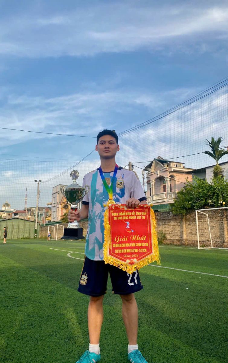 Sinh viên Nguyễn Tiến Đào: Mình luôn quan niệm: Sinh viên không chỉ cần học giỏi mà còn phải sống đẹp và biết sẻ chia. Vì thế, mình tích cực tham gia Câu lạc bộ Tình nguyện của trường, các chương trình hiến máu nhân đạo, hỗ trợ mùa hè xanh, xuân tình nguyện... Những hoạt động ấy giúp mình hiểu hơn về giá trị của sự cho đi. Ngoài ra, mình rất đam mê thể thao – đặc biệt là bóng đá và bóng chuyền. Năm vừa rồi, đội bóng nam lớp mình vinh dự giành giải Nhất Giải bóng đá nam toàn trường – một kỷ niệm thật đáng nhớ!
