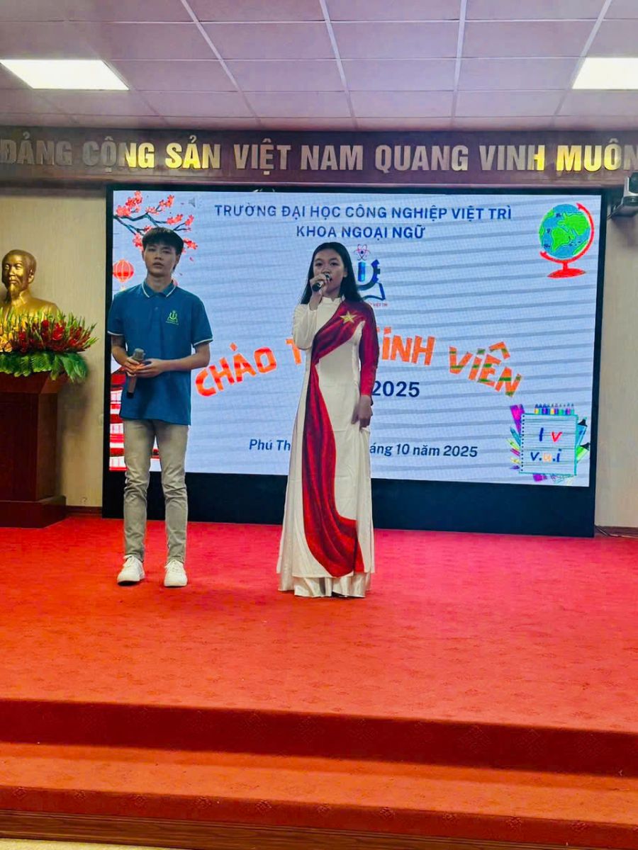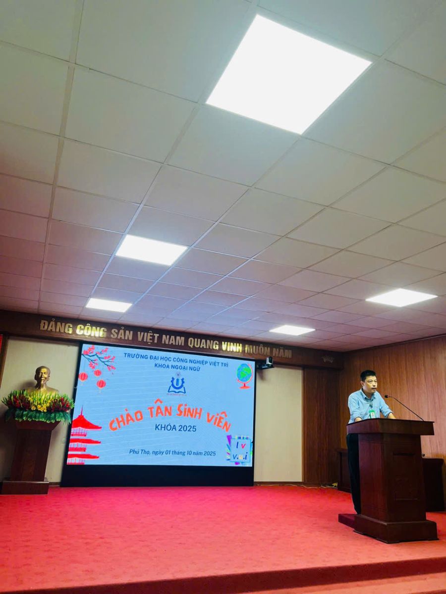 Sáng ngày 1/10/2025, trong không khí hân hoan, phấn khởi của những ngày đầu năm học mới, Khoa Ngoại ngữ - Trường Đại học Công nghiệp Việt Trì tổ chức chương trình “Chào tân sinh viên khóa tuyển sinh năm 2025”. Đây là sự kiện có ý nghĩa quan trọng, đánh dấu bước khởi đầu mới đầy hứa hẹn của các em tân sinh viên, đồng thời thể hiện sự quan tâm, đồng hành của Nhà trường và Khoa đối với thế hệ sinh viên mới.