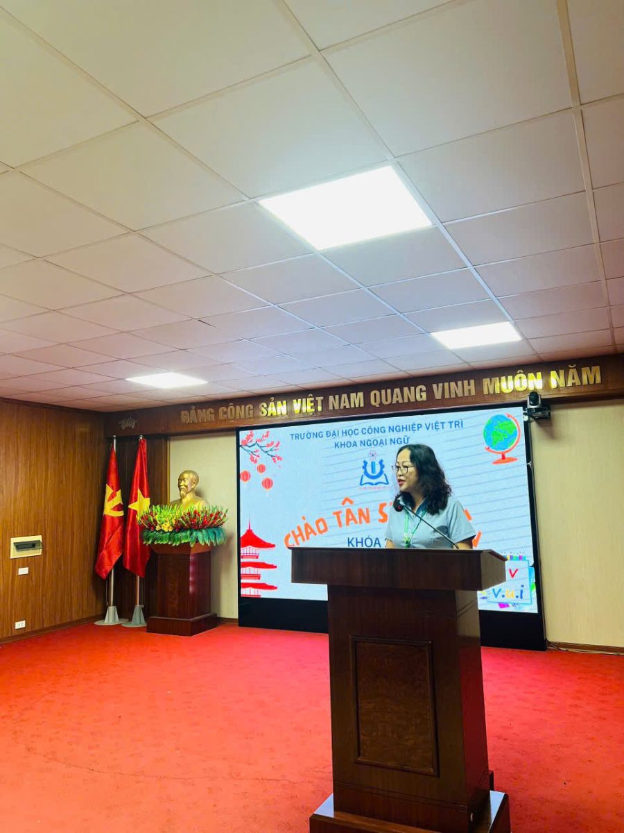 Phát biểu mở đầu chương trình, TS. Nguyễn Thị Ngọc Quỳnh – Phó Hiệu trưởng Nhà trường  nhấn mạnh rằng môi trường học tập tại Khoa Ngoại ngữ – Trường Đại học Công nghiệp Việt Trì sẽ là nơi “chắp cánh ước mơ”, giúp sinh viên phát triển toàn diện và tự tin hội nhập.