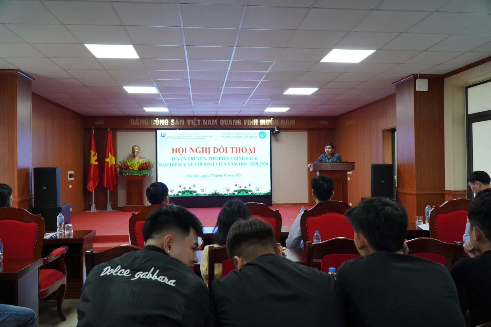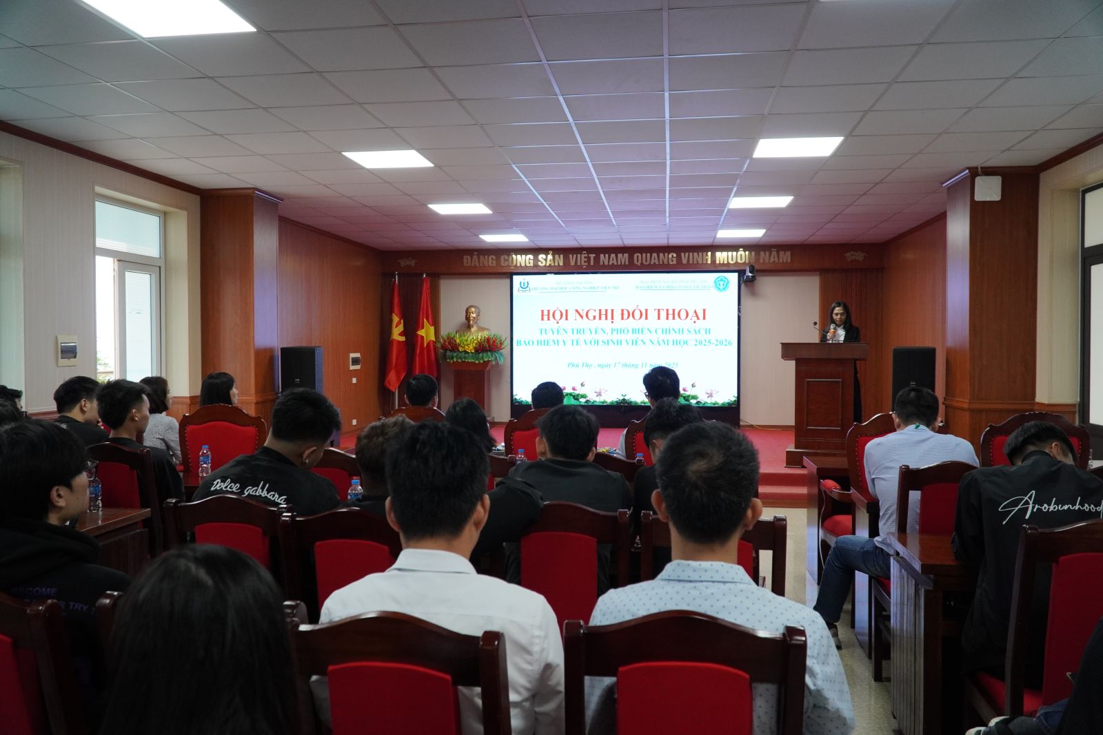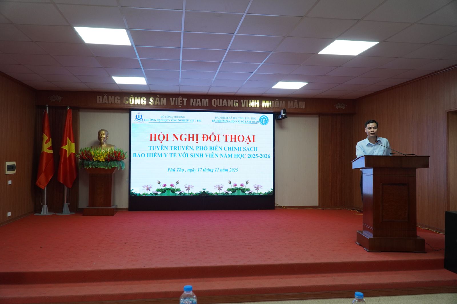 Ngày 17/11/2025, Trường Đại học Công nghiệp Việt Trì phối hợp với BHXH cơ sở Lâm Thao tổ chức Hội nghị tuyên truyền, tư vấn về BHYT cho sinh viên. Chương trình nhằm nâng cao hiểu biết về quyền lợi, trách nhiệm và những điểm mới trong chính sách BHYT học sinh, sinh viên.