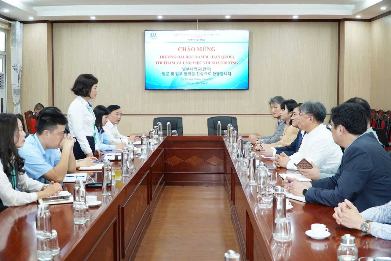 Ngày 14/11/2025, Trường Đại học Công nghiệp Việt Trì vinh dự đón tiếp và làm việc với Đoàn công tác Trường Đại học Nambu (Hàn Quốc) do GS. Cho Joon-Beom – Hiệu trưởng Trường Đại học Nambu làm Trưởng đoàn. Tham gia đoàn còn có ông Koo Min – Trưởng Ban Hợp tác quốc tế cùng các cán bộ, giảng viên của Nhà trường.