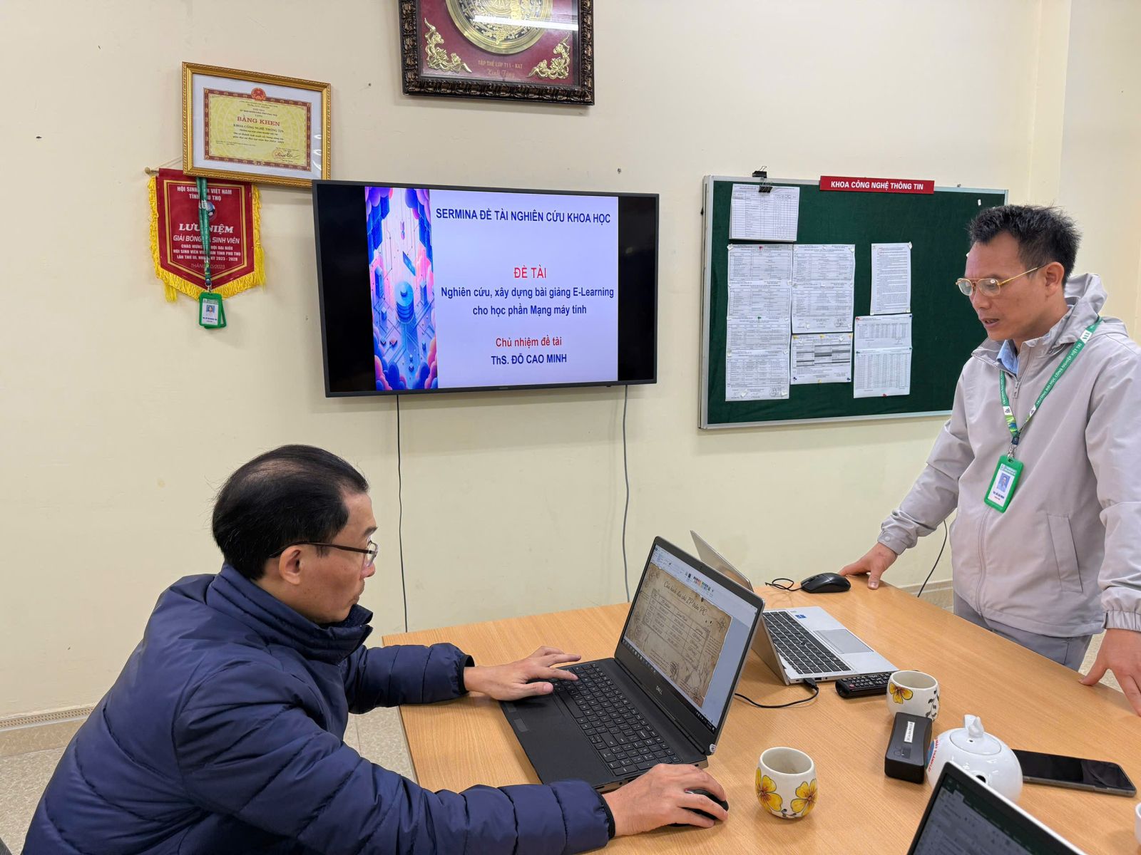 Thực hiện kế hoạch nghiên cứu khoa học năm 2025, Khoa Công nghệ thông tin đã tổ chức Seminar báo cáo các đề tài NCKH cấp trường với sự tham dự của các giảng viên trong khoa. Buổi Seminar diễn ra trong không khí học thuật nghiêm túc, tập trung vào bốn đề tài nghiên cứu hướng đến đổi mới và nâng cao hiệu quả giảng dạy thông qua việc xây dựng hệ thống bài giảng E-learning.