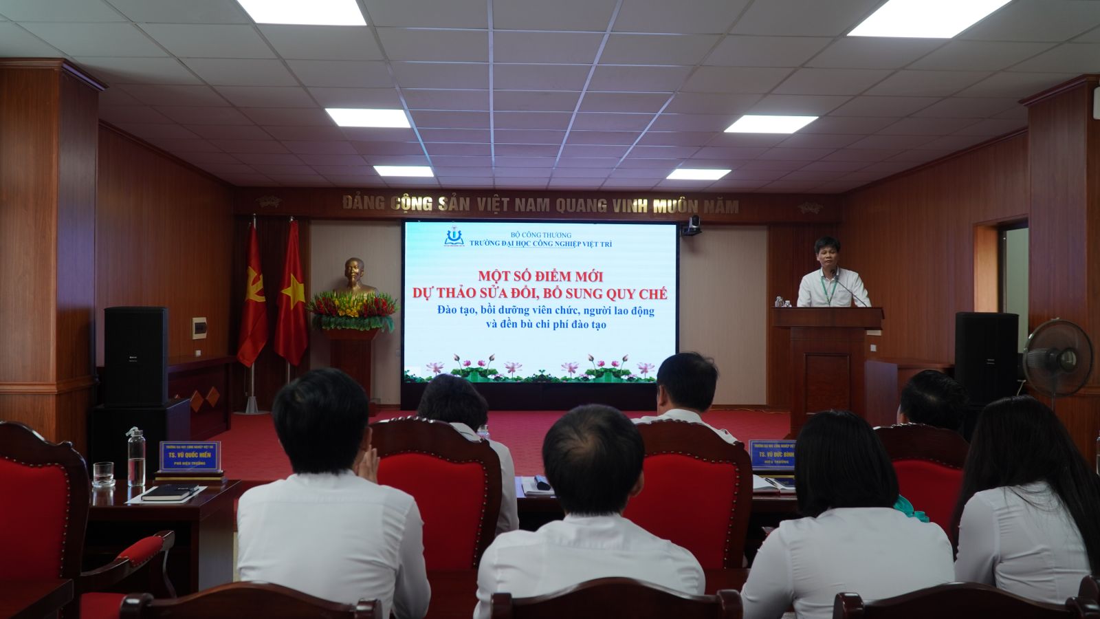 Tiếp theo chương trình, ThS. Trương Minh Chính – Trưởng phòng Tổ chức – Hành chính, triển khai một số điểm mới dự thảo sửa đổi bổ sung Quy chế đào tạo, bồi dưỡng viên chức và đền bù chi phí đào tạo bồi dưỡng.