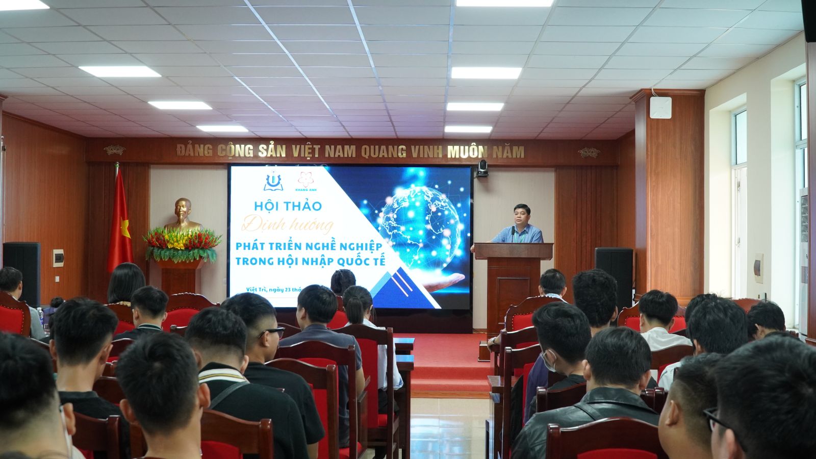 Sáng ngày 23/9/2024, Trường Đại học Công nghiệp Việt Trì phối hợp cùng Công ty cổ phần Giáo dục Quốc tế Khang Anh tổ chức Hội thảo định hướng phát triển nghề nghiệp trong thời đại hội nhập quốc tế cho sinh viên năm thứ 4 khoa Điện và khoa Cơ khí – Ô tô.