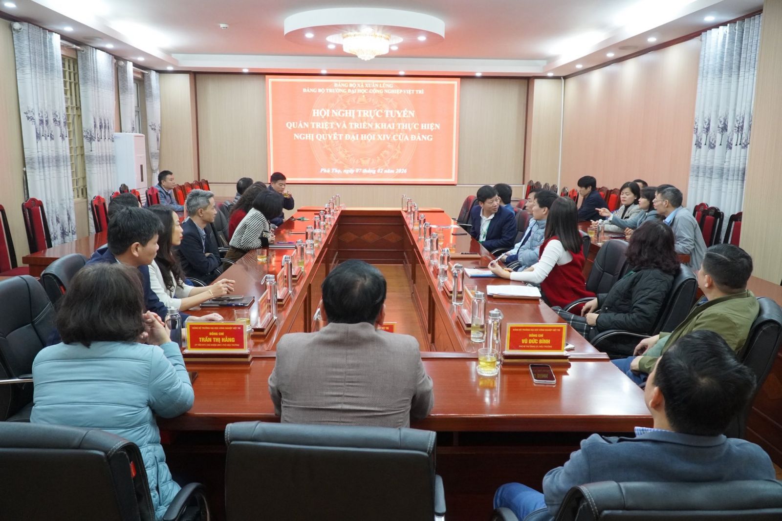 Tại điểm cầu Trường Đại học Công nghiệp Việt Trì, tham dự Hội nghị có đồng chí Lê Thanh Tâm – Bí thư Đảng ủy; đồng chí Vũ Đức Bình – Phó Bí thư Đảng ủy, Hiệu trưởng Nhà trường; Đồng chí Trần Thị Hằng- Uỷ viên BTV, Phó Hiệu trưởng; Đồng chí Vũ Quốc Hiến - Đảng uỷ viên, Phó Hiệu trưởng; Đồng chí Nguyễn Thị Ngọc Quỳnh - Đảng uỷ viên, Phó Hiệu trưởng; Ban Chấp hành Đảng bộ; cấp ủy các chi bộ trực thuộc.