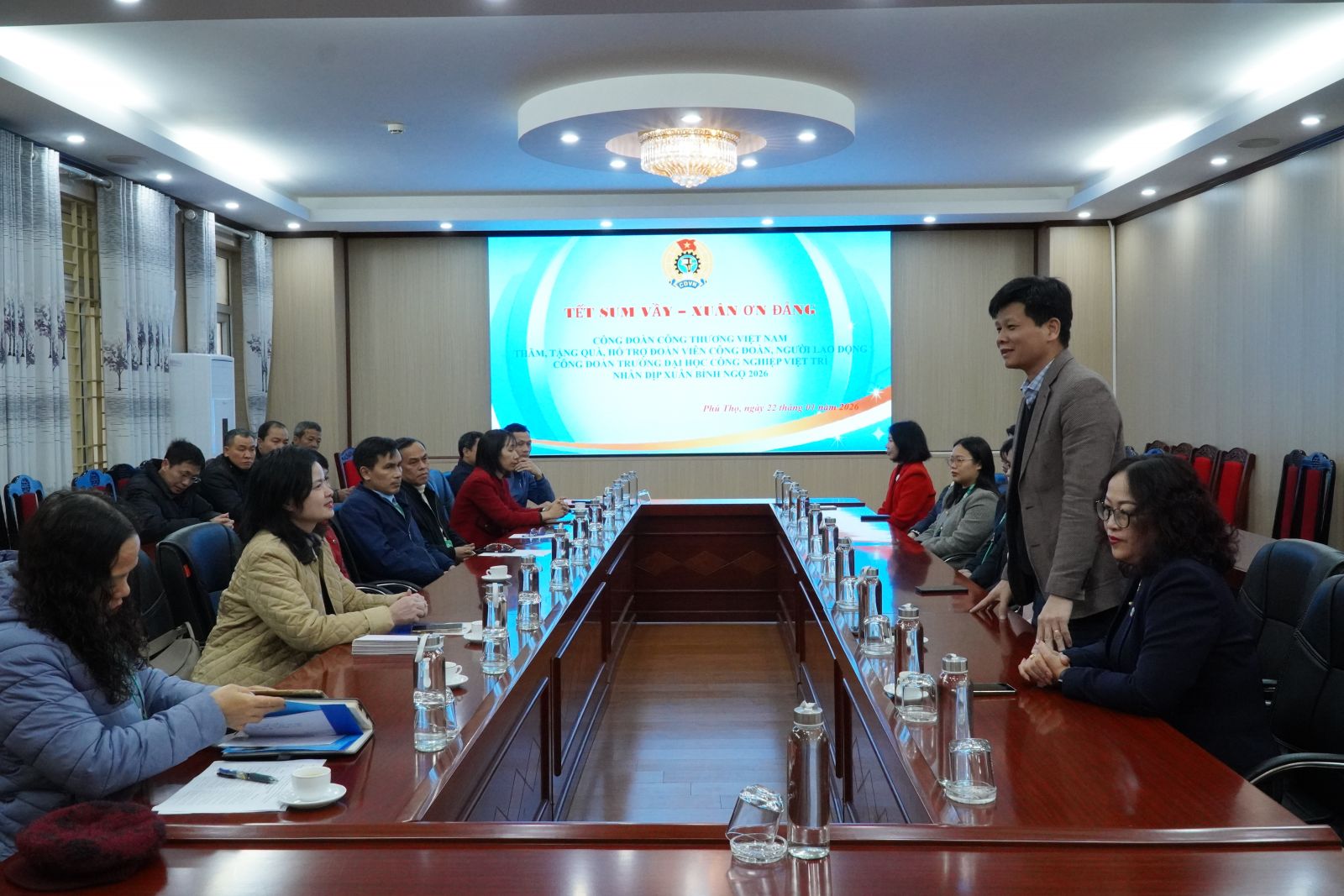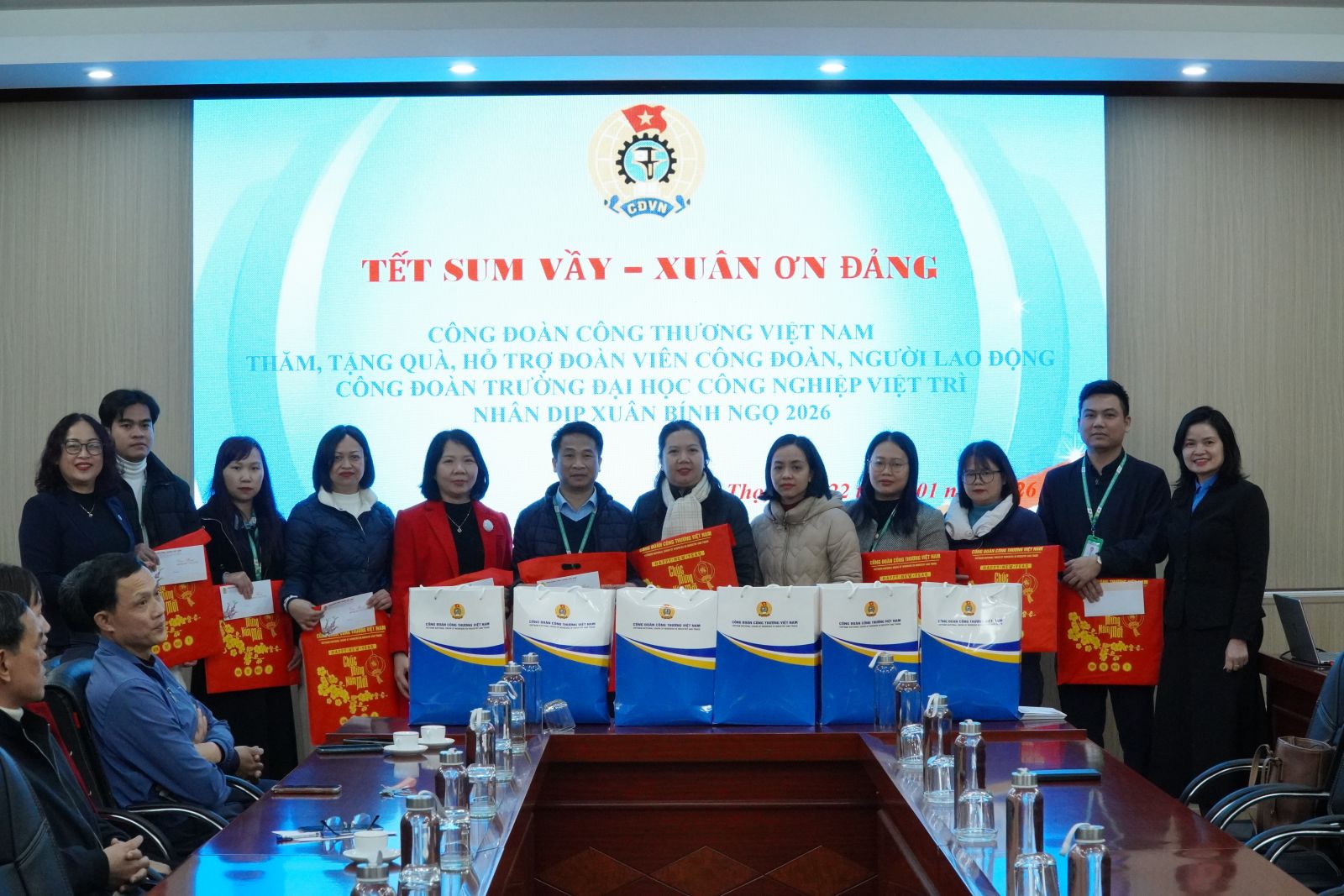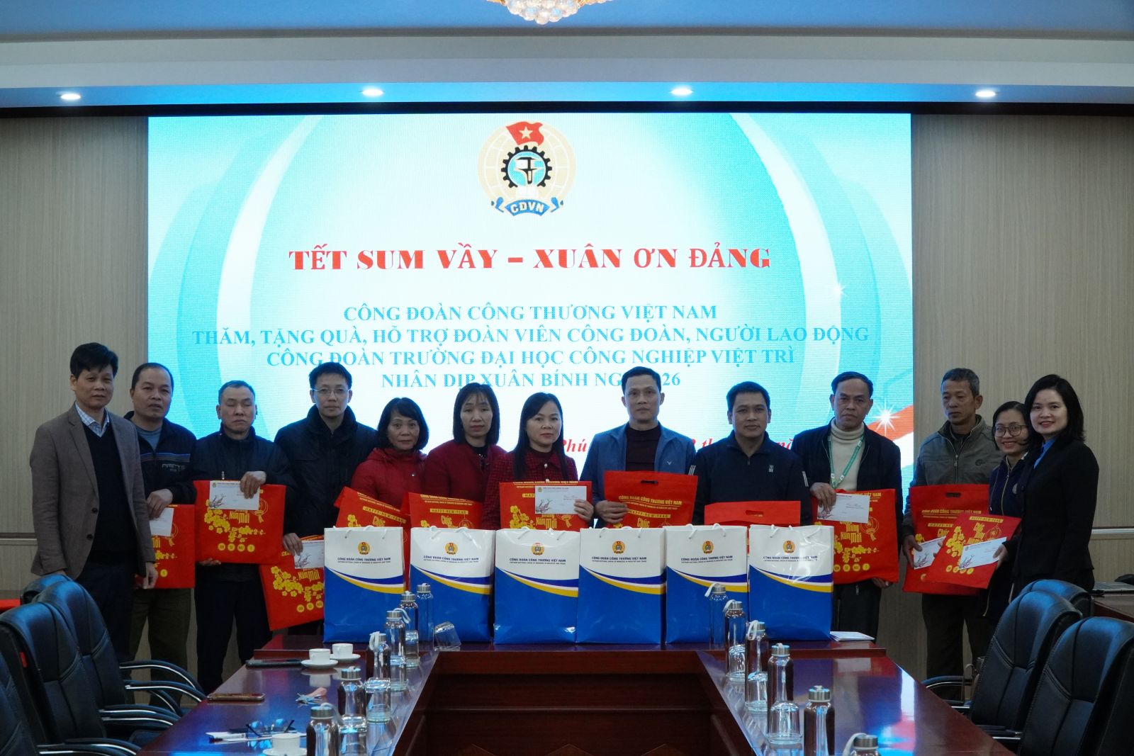 Nhân dịp Tết Nguyên đán Bính Ngọ 2026, Công đoàn Công Thương Việt Nam đã tổ chức chương trình “Tết sum vầy – Xuân ơn Đảng”, thăm hỏi, động viên và trao quà hỗ trợ cho đoàn viên công đoàn, người lao động Trường Đại học Công nghiệp Việt Trì. Chương trình thể hiện sự quan tâm sâu sắc của tổ chức công đoàn các cấp đối với đời sống vật chất, tinh thần của đoàn viên, người lao động mỗi dịp Tết đến, Xuân về.