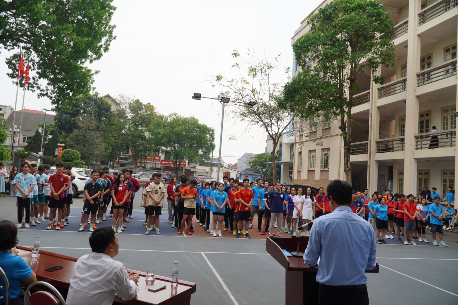 Tham dự khai mạc có TS. Vũ Đức Bình – Hiệu trưởng Nhà trường; các thầy, cô Ban Giám hiệu Nhà trường; Chủ tịch Công đoàn trường, Bí thư Đoàn thanh niên; lãnh đạo các Khoa, Phòng, Trung tâm; cùng đông đảo vận động viên là cán bộ, giảng viên, người lao động tham gia tranh tài ở các bộ môn như pickleball, bóng chuyền hơi, bóng đá.