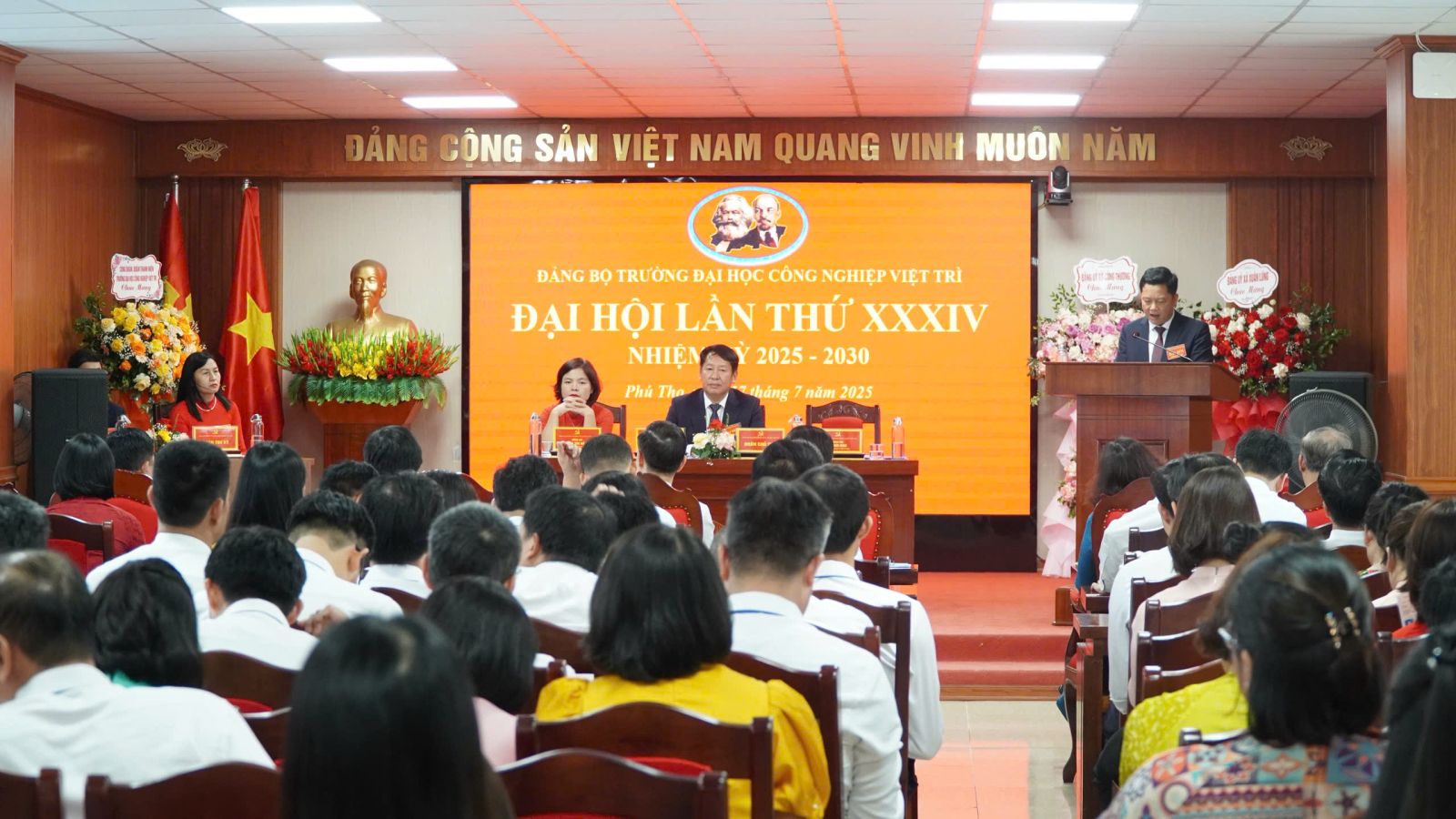 Ngày 17/7/2025, Đảng bộ Trường Đại học Công nghiệp Việt Trì đã long trọng tổ chức Đại hội lần thứ XXXIV, nhiệm kỳ 2025 - 2030. Đây là sự kiện chính trị quan trọng, đánh dấu bước phát triển mới của Đảng bộ Nhà trường trong công tác lãnh đạo thực hiện nhiệm vụ chính trị và xây dựng tổ chức Đảng vững mạnh.