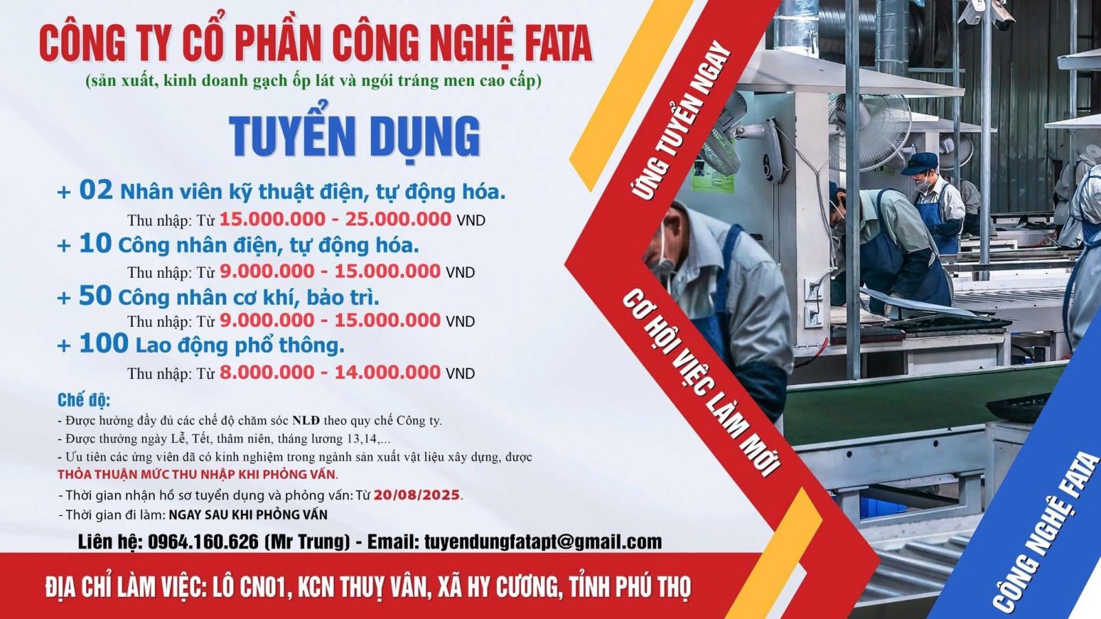 CÔNG TY CỔ PHẦN CÔNG NGHỆ FATA TUYỂN DỤNG!