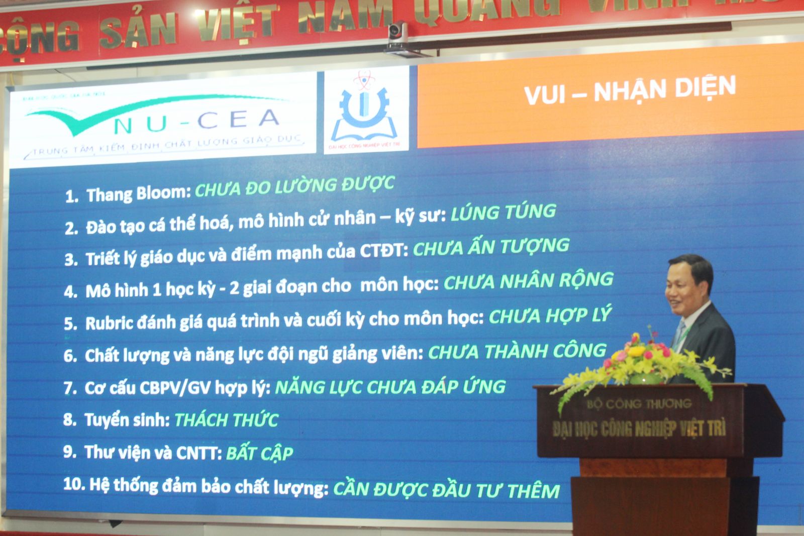 Chiều ngày 23/5/2022, Trường Đại học Công nghiệp Việt Trì phối hợp với Trung tâm Kiểm định chất lượng giáo dục - Đại học Quốc gia Hà Nội (KĐCLGD – ĐHQGHN) tổ chức bế mạc đợt khảo sát chính thức đánh giá chất lượng chương trình đào tạo của Nhà trường đối với ngành Công nghệ kỹ thuật cơ khí, Công nghệ kỹ thuật điều khiển và tự động hóa, ngành Hóa học.