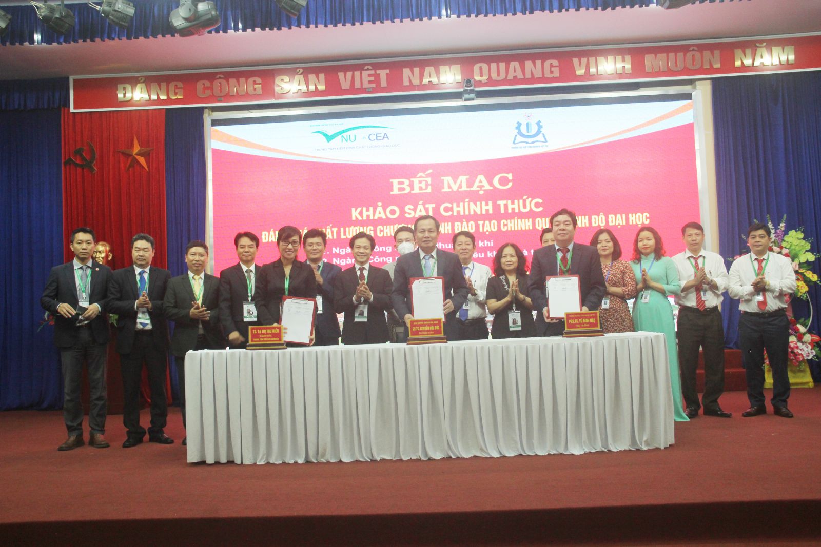 Cũng trong chương trình bế mạc, TS. Tạ Thị Thu Hiền - Giám đốc Trung tâm KĐCLGD - ĐHQGHN, PGS.TS. Vũ Đình Ngọ - Hiệu trường Nhà trường, GS.TS. Nguyễn Hữu Đức - Trưởng Đoàn đánh giá ngoài đã ký biên bản hoàn thành đợt khảo sát chính thức chương trình đào tạo 03 ngành: Công nghệ kỹ thuật cơ khí; Công nghệ kỹ thuật điều khiển và tự động hóa; Hóa học theo tiêu chuẩn đánh giá chất lượng chương trình đào tạo.