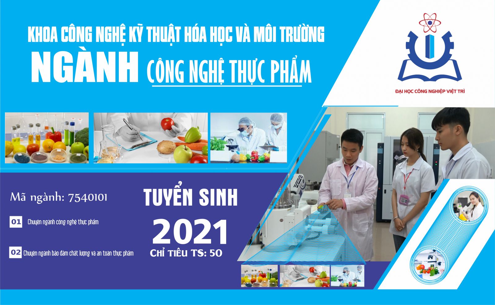 * Năm 2021, trường Đại học Công nghiệp Việt Trì tuyển sinh 50 chỉ tiêu ngành Công nghệ Thực phẩm, mã ngành 7540101 với các phương thức xét tuyển: