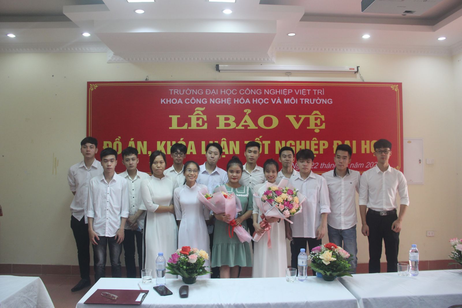 Lễ bảo vệ đồ án, khóa luận tốt nghiệp có sự hiện diện của TS. Nguyễn Mạnh Tiến – Trưởng khoa Công nghệ Hoá học và Môi trường cùng các thầy cô lãnh đạo khoa; TS. Quản Cẩm Thuý – Trưởng khoa Kỹ thuật Phân tích; TS. Đặng Ngọc Định – Phó trưởng phòng Quản lý đào tạo; các thầy cô trong các Hội đồng bảo vệ đồ án, khóa luận tốt nghiệp, cùng toàn thể sinh viên khoa Công nghệ Hóa học và Môi trường khóa tuyển sinh năm 2017.