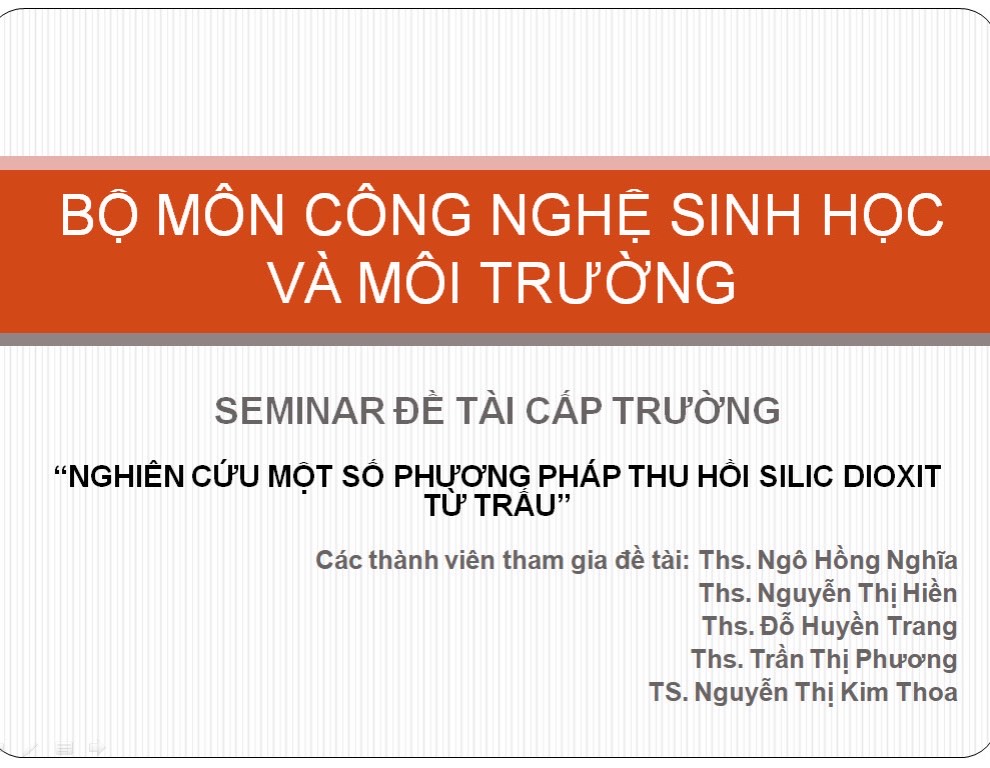 Khoa Công nghệ Hoá học và Môi trường tổ chức seminar đề tài “Nghiên cứu một số phương pháp thu hồi silic dioxit từ trấu”