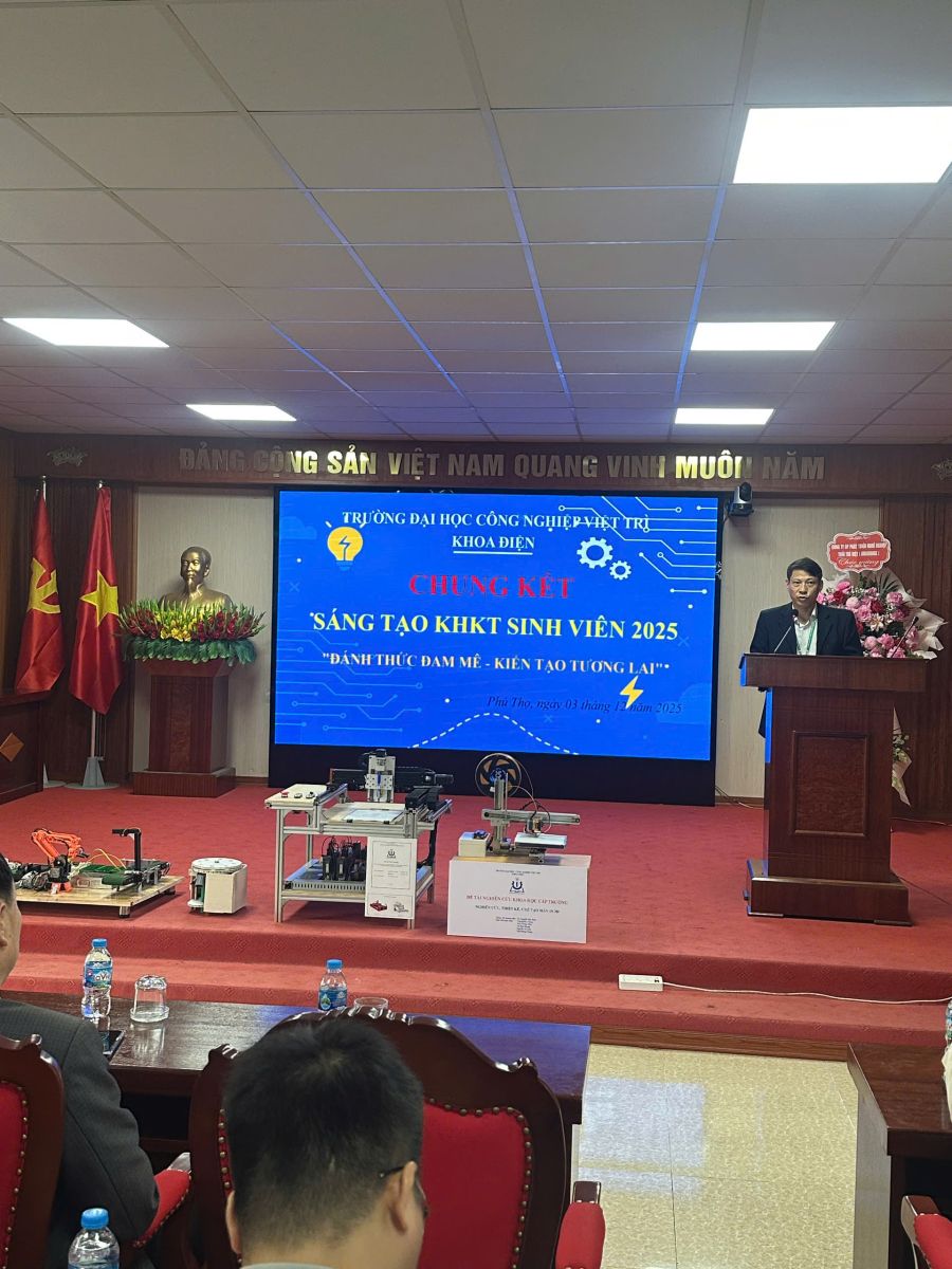 Ngày 03/12/2025, trong không khí sôi nổi của tuổi trẻ và tinh thần nghiên cứu sáng tạo, Khoa Điện – Trường Đại học Công nghiệp Việt Trì đã tổ chức Chung kết Cuộc thi Sáng tạo Khoa học Kỹ thuật Sinh viên năm 2025. Đây là sự kiện có ý nghĩa quan trọng nhằm tôn vinh niềm đam mê nghiên cứu khoa học và khuyến khích tinh thần đổi mới sáng tạo trong sinh viên Khoa Điện.