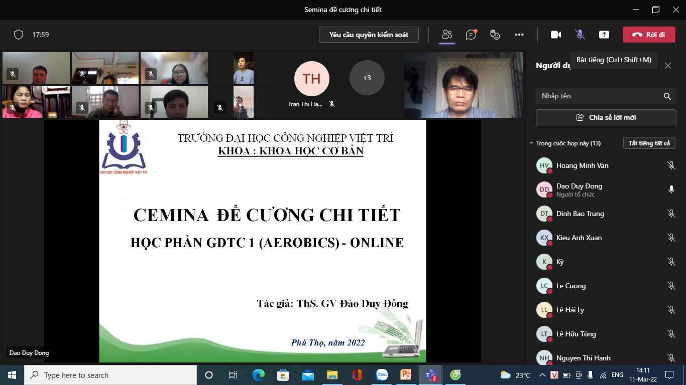 Chiều ngày 11/3/2022, trên phần mềm MS teams, Khoa Khoa học cơ bản tổ chức seminar đề cương chi tiết học phần “Giáo dục thể chất 1 (Aerobics) - Online” cho sinh viên khoá tuyển sinh 2021.