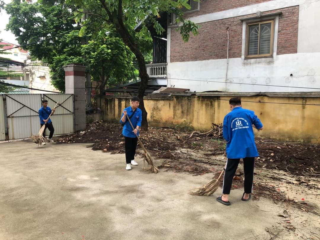 Dọn dẹp vệ sinh rác thải, bóc dỡ tờ rơi quảng cáo bên trong và ngoài khu vực trường.