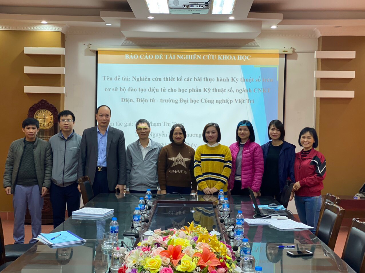Chiều 20/12/2022, tại phòng 305, giảng đường C1, Th.S Phạm Thị Tươi đã bảo vệ thành công đề tài nghiên cứu khoa học cấp Trường: “Nghiên cứu thiết kế các bài thực hành Kỹ thuật số trên cơ sở bộ đào tạo điện tử cho học phần Kỹ thuật số, ngành CNKT Điện, Điện tử - Trường Đại học Công nghiệp Việt Trì”.