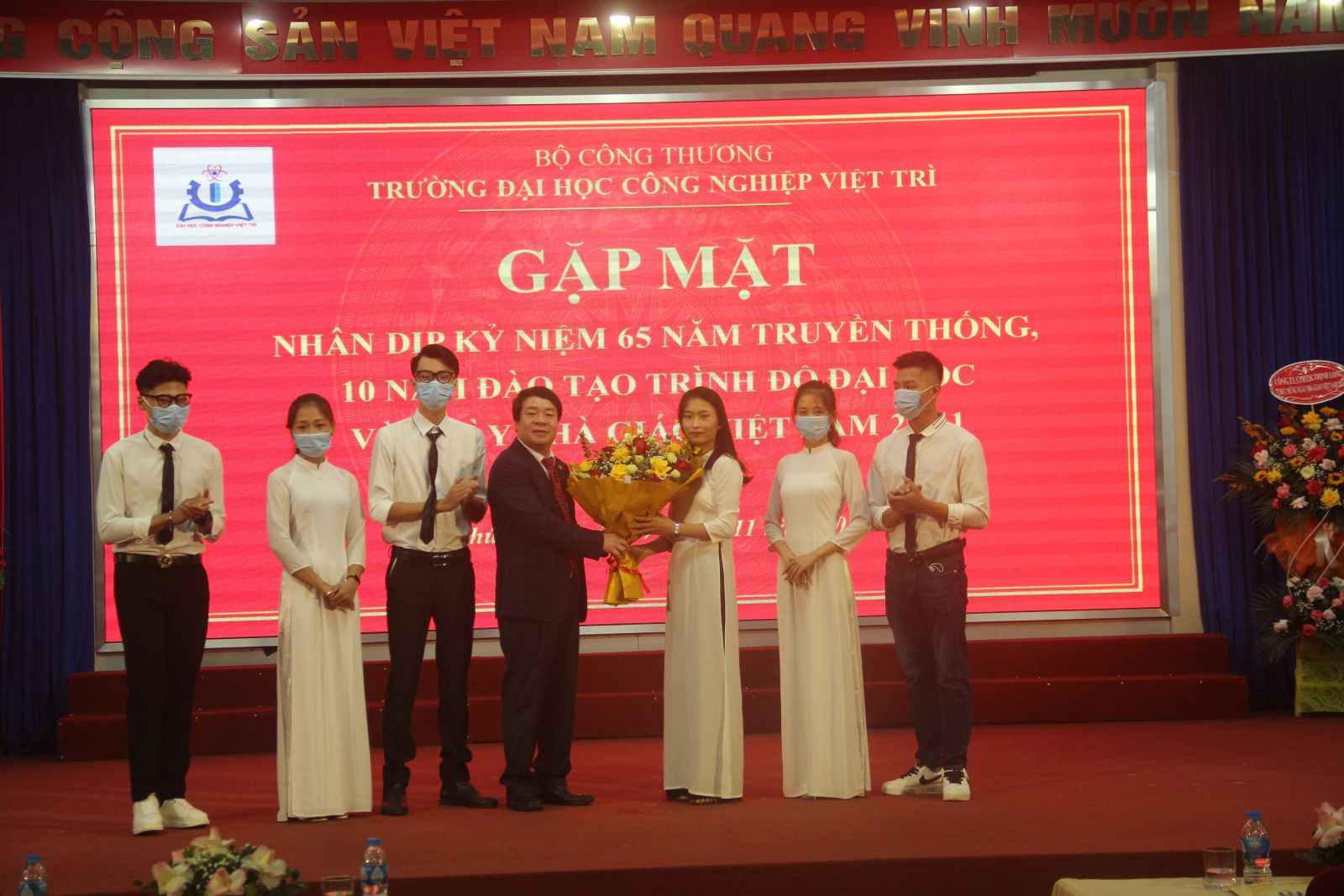 Buổi Lễ cũng được đón đoàn đại biểu học viên, sinh viên Trường Đại học Công nghiệp Việt Trì tặng hoa và phát biểu tri ân thầy cô.