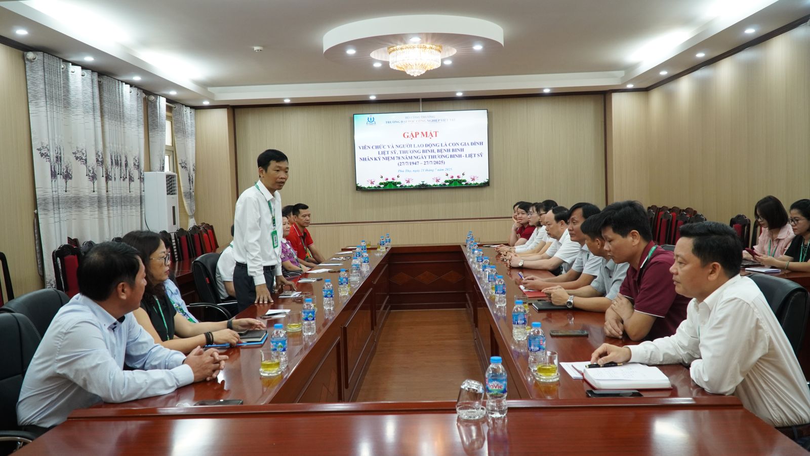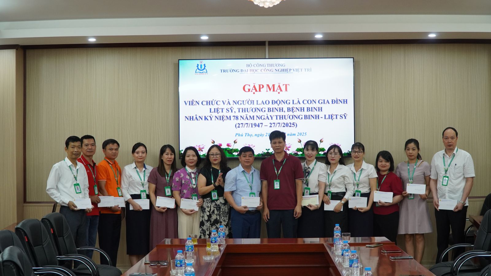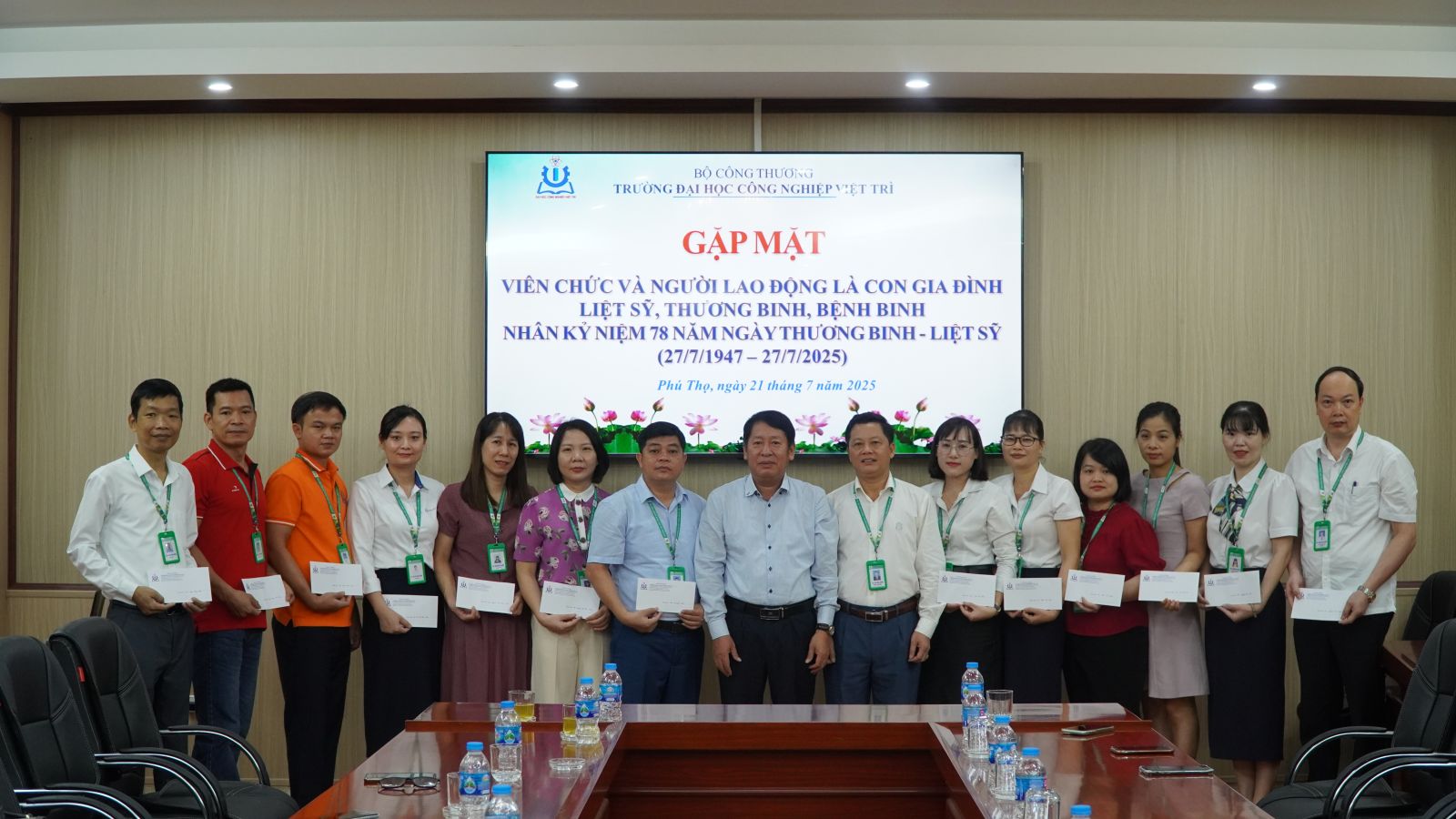 Sáng ngày 21/7/2025, nhân dịp kỷ niệm 78 năm ngày Thương binh - Liệt sĩ, trường Đại học Công nghiệp Việt Trì đã tổ chức gặp mặt các viên chức, người lao động là con liệt sĩ, thương binh, bệnh binh đang công tác tại trường. Đây là một hoạt động thường niên, thể hiện tình cảm và trách nhiệm sâu sắc của Nhà trường đối với những người có công với cách mạng, những người đã chiến đấu, hi sinh tính mạng và một phần xương máu của mình cho độc lập, tự do của Tổ quốc.