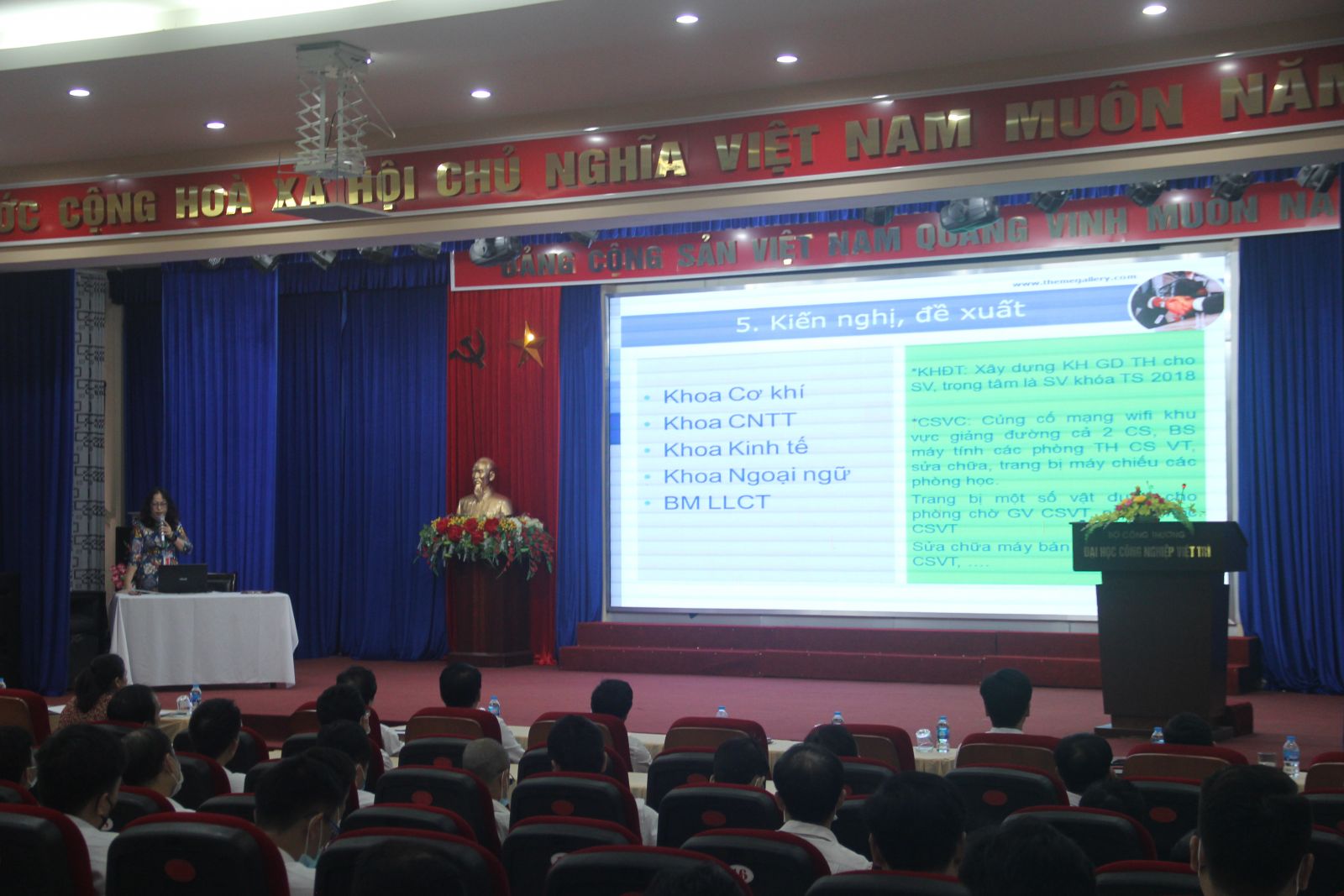 Hội nghị được nghe đồng chí Nguyễn Hữu Hải – Phó Trưởng phòng Khoa học công nghệ và đảm bảo chất lượng giáo dục trình bày báo cáo về hoạt động khoa học công nghệ và đảm bảo chất lượng giáo dục của nhà trường trong thời gian gần đây.