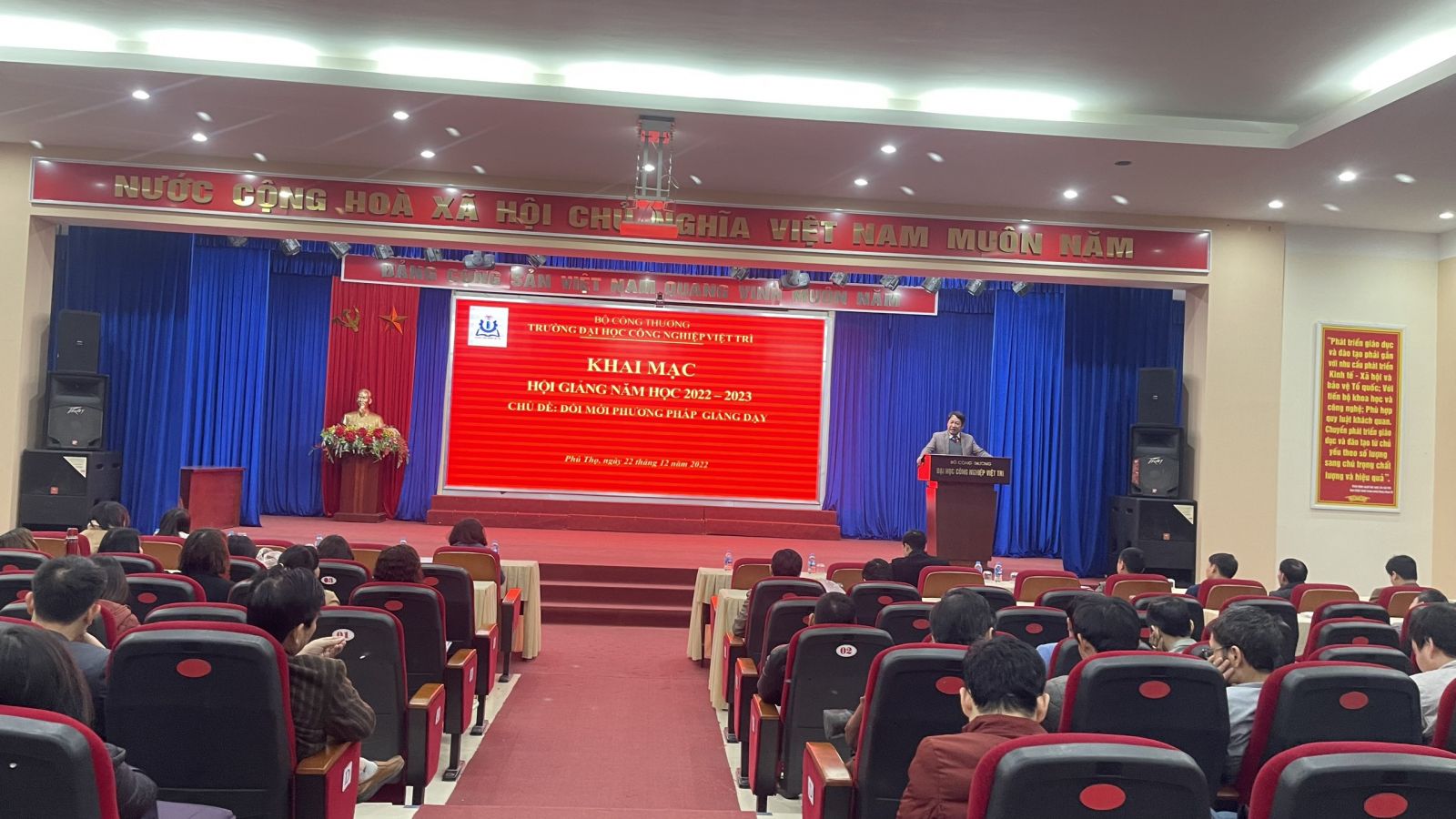 Sáng ngày 22/12/2022, tại Hội trường cơ sở Lâm Thao, Trường Đại học Công nghiệp Việt Trì đã long trọng tổ chức khai mạc Hội giảng năm học 2022-2023 với chủ đề: Đổi mới phương pháp giảng dạy.
