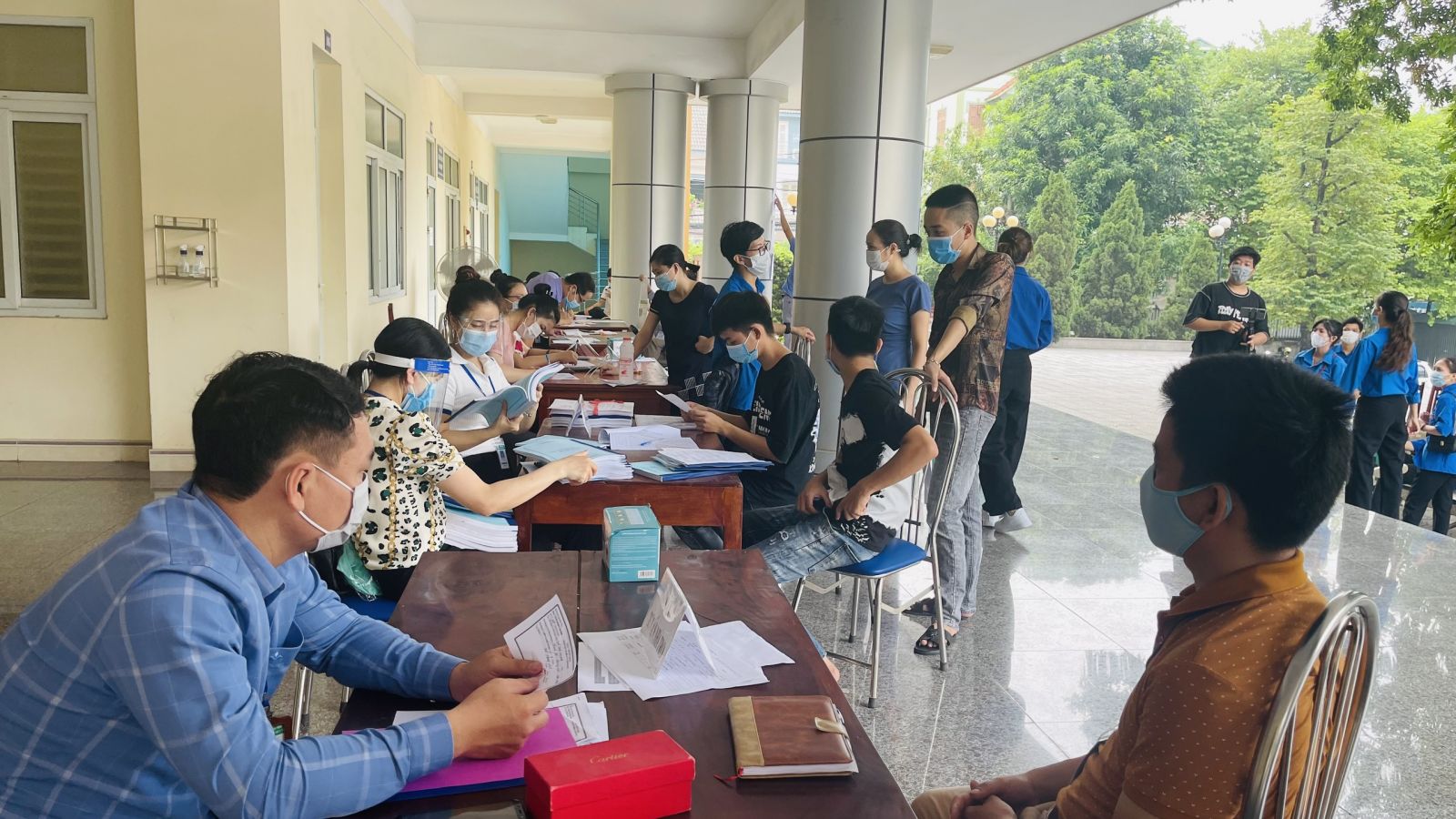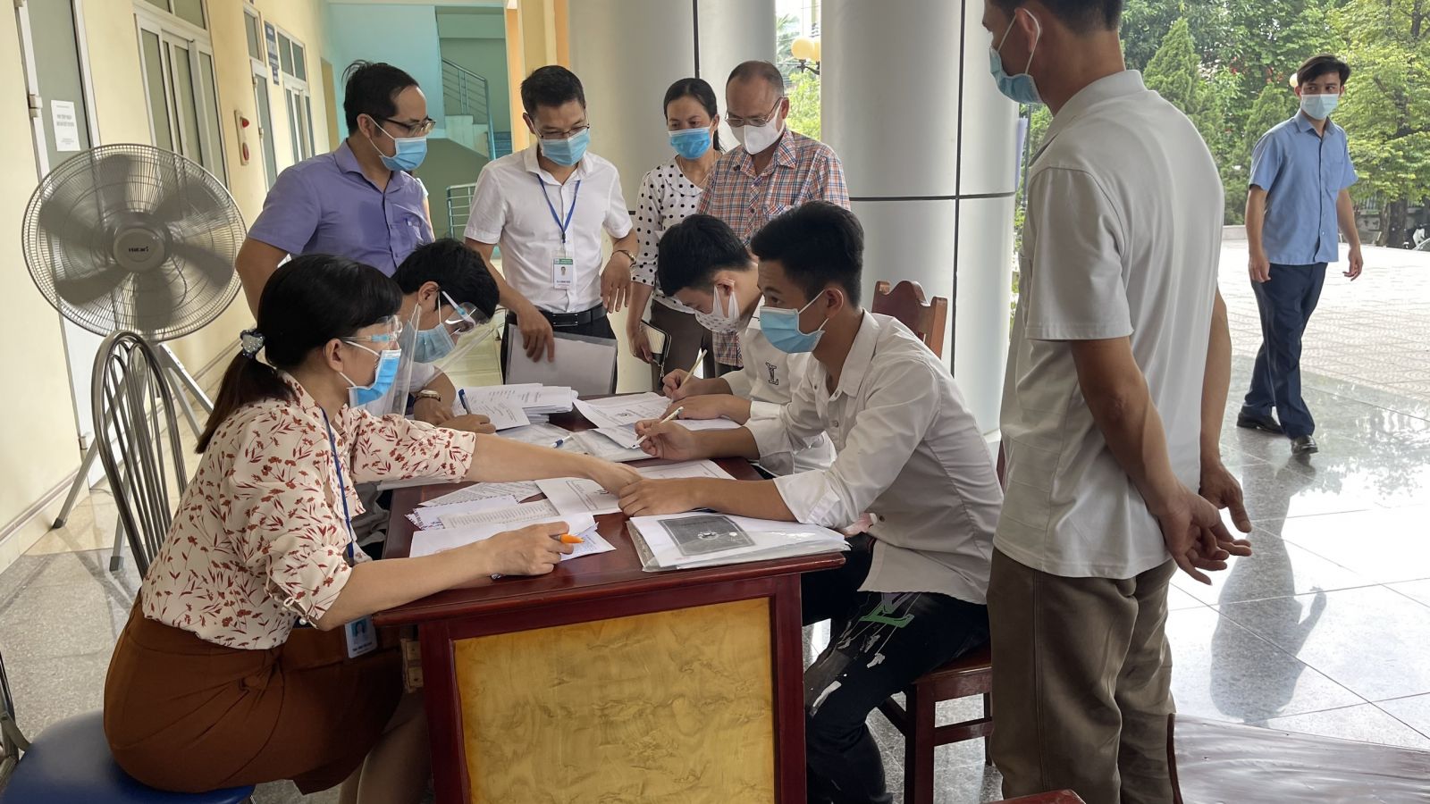 Nhằm tạo điều kiện cho công tác thu nhận hồ sơ để hoàn thành thủ tục nhập học, các phòng ban chức năng, các khoa của Nhà trường cùng sinh viên tình nguyện của Đoàn Thanh niên, Hội Sinh viên đã tích cực hỗ trợ, hướng dẫn các em tân sinh viên giúp cho công tác tiếp đón tân sinh viên và thu hồ sơ được thực hiện khẩn trương. Cùng với các em đến nhập học trực tiếp, năm nay, do diễn biến phức tạp của tình hình dịch bệnh Covid -19 và hỗ trợ các em sinh viên ở xa, Nhà trường đã triển khai thực hiện nhận hồ sơ nhập học theo hình thức online.