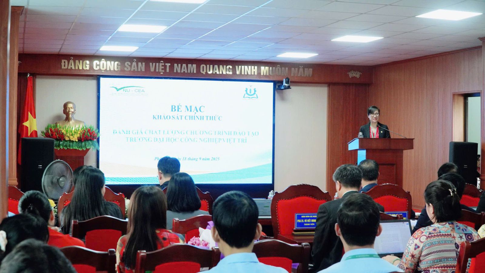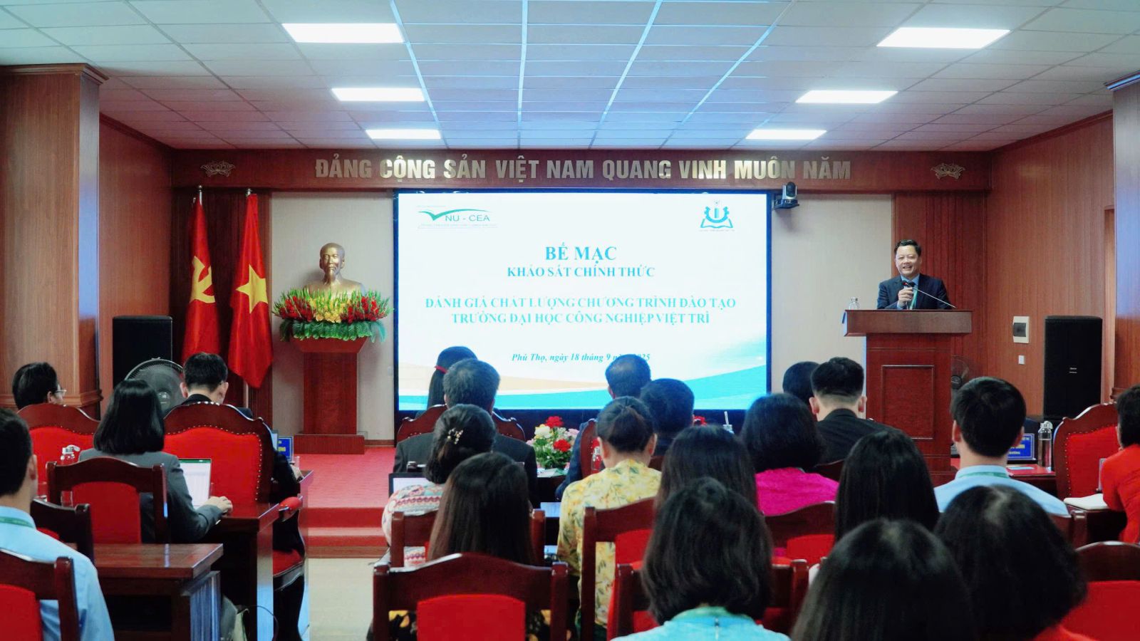 Chiều ngày 18/9/2025, Trường Đại học Công nghiệp Việt Trì phối hợp với Trung tâm Kiểm định chất lượng giáo dục – Đại học Quốc gia Hà Nội tổ chức Bế mạc đợt khảo sát chính thức 3 chương trình đào tạo: Công nghệ kỹ thuật ô tô, Công nghệ thông tin và Quản trị kinh doanh. Đây là lần đánh giá chương trình đào tạo lần thứ 3, tiếp nối các đợt kiểm định chất lượng cơ sở giáo dục năm 2018, năm 2023 và đánh giá chương trình đào tạo năm 2019, năm 2023, nâng tổng số chương trình đã được đánh giá lên 9 chương trình. Đây là dấu mốc quan trọng khẳng định quyết tâm của Nhà trường trong việc xây dựng và phát triển chất lượng đào tạo ngày càng bền vững.