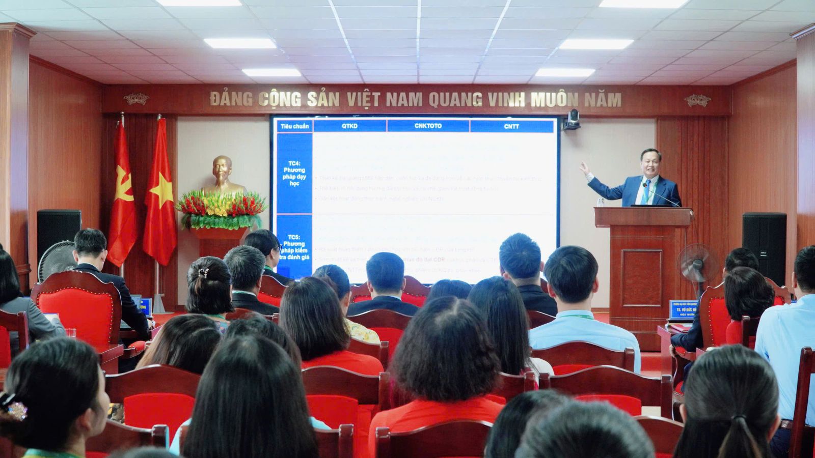 Mở đầu chương trình, đại diện đoàn Đánh giá ngoài trình bày báo cáo sơ bộ kết quả khảo sát chính thức do TS. Trần Hữu Lượng - Trưởng phòng đánh giá và công nhận chất lượng giáo dục, Trung tâm kiểm định chất lượng giáo dục – Thư ký đoàn trình bày cơ sở, nguyên tắc và quá trình đánh giá chương trình đào tạo.