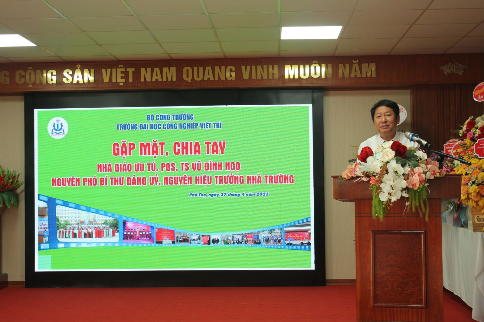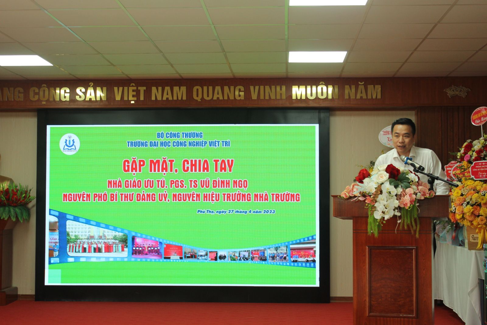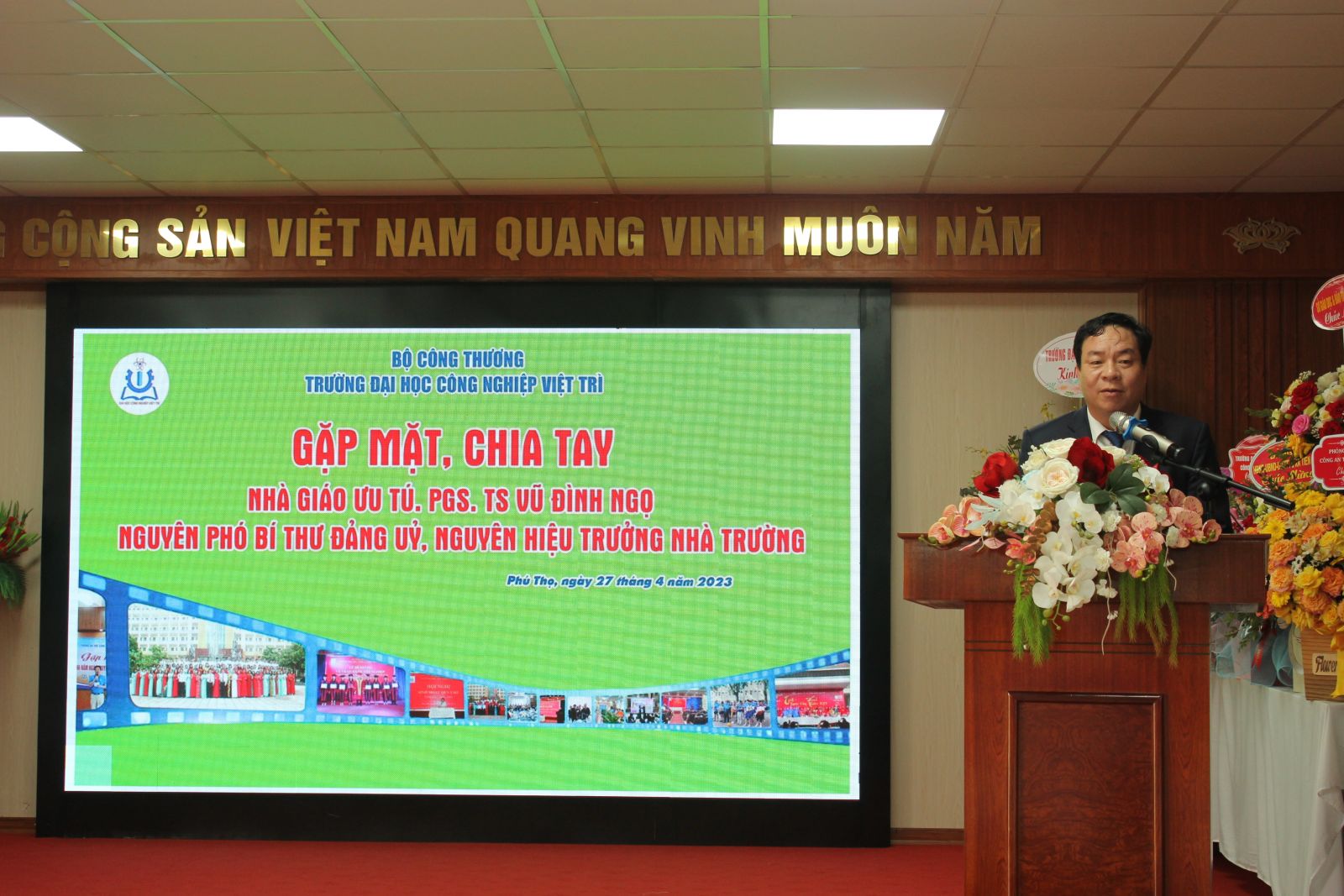 Chiều ngày 27 tháng 4 năm 2023, trong không khí đầm ấm, cởi mở, thắm tình đồng chí, đồng nghiệp, Trường Đại học Công nghiệp Việt Trì long trọng tổ chức buổi gặp mặt và chia tay PGS.TS NGƯT Vũ Đình Ngọ - Nguyên Phó Bí thư Đảng ủy, Nguyên Hiệu trưởng Trường Đại học Công nghiệp Việt Trì.