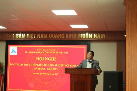 Chiều ngày 1/3/2023, tại Hội trường cơ sở Việt Trì, Trường Đại học Công nghiệp Việt Tri tổ chức Hội nghị đối thoại giữa Ban giám hiệu với sinh viên. Đây là hoạt động được tổ chức thường niên nhằm tạo ra diễn đàn trao đổi thông tin giữa BGH với sinh viên, giúp Lãnh đạo nhà trường nắm bắt và giải quyết kịp thời những khó khăn của sinh viên trong quá trình học tập, rèn luyện tại trường, nâng cao chất lượng đào tạo và phục vụ đào tạo.