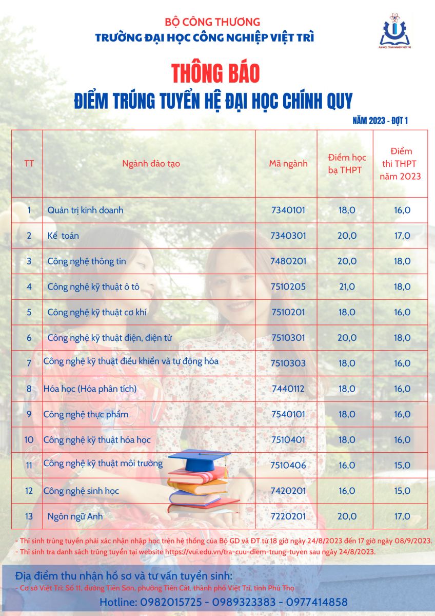 Thông báo điểm trúng tuyển đại học chính quy đợt 1 năm 2023