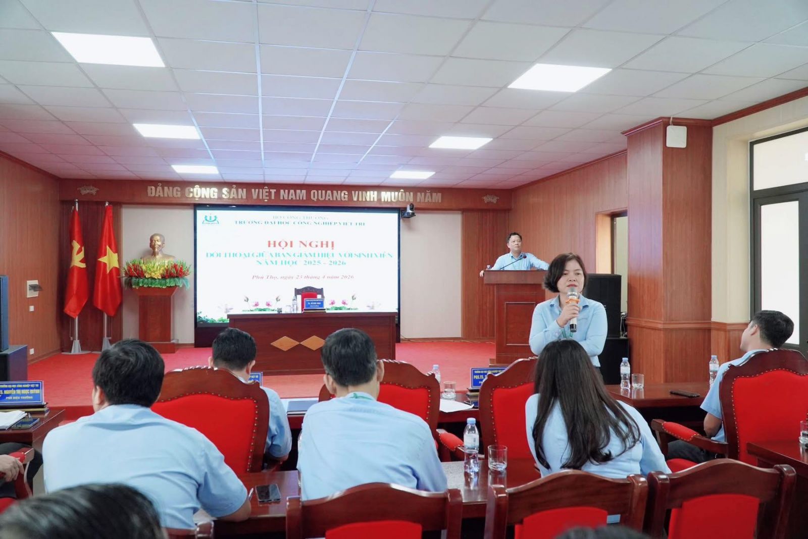 Chiều ngày 23/4, Trường Đại học Công nghiệp Việt Trì đã tổ chức Hội nghị đối thoại sinh viên năm 2026 – diễn đàn dân chủ, cởi mở nhằm tăng cường kết nối giữa Nhà trường và người học.
