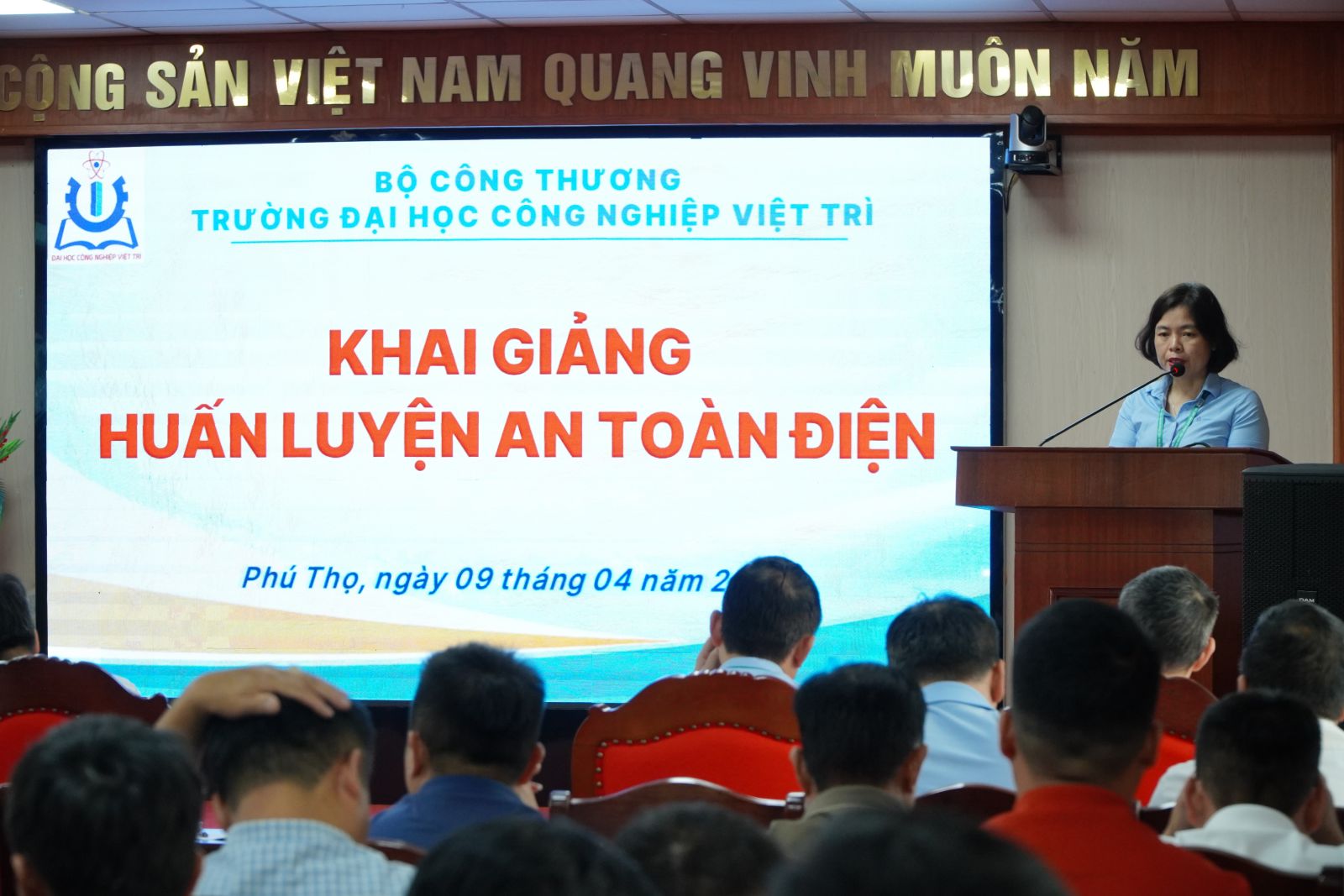 Mở đầu, PGS.TS Trần Thị Hằng – Phó Hiệu trưởng Nhà trường đã phát biểu khai mạc lớp huấn luyện. Trong bài phát biểu, Cô đã giới thiệu về quá trình phát triển của Nhà trường, đồng thời nhấn mạnh tầm quan trọng của công tác An toàn điện trong sản xuất và đời sống. An toàn điện không chỉ góp phần đảm bảo tính mạng, sức khỏe con người mà còn giúp nâng cao hiệu quả lao động, hạn chế rủi ro, sự cố trong quá trình vận hành hệ thống điện.