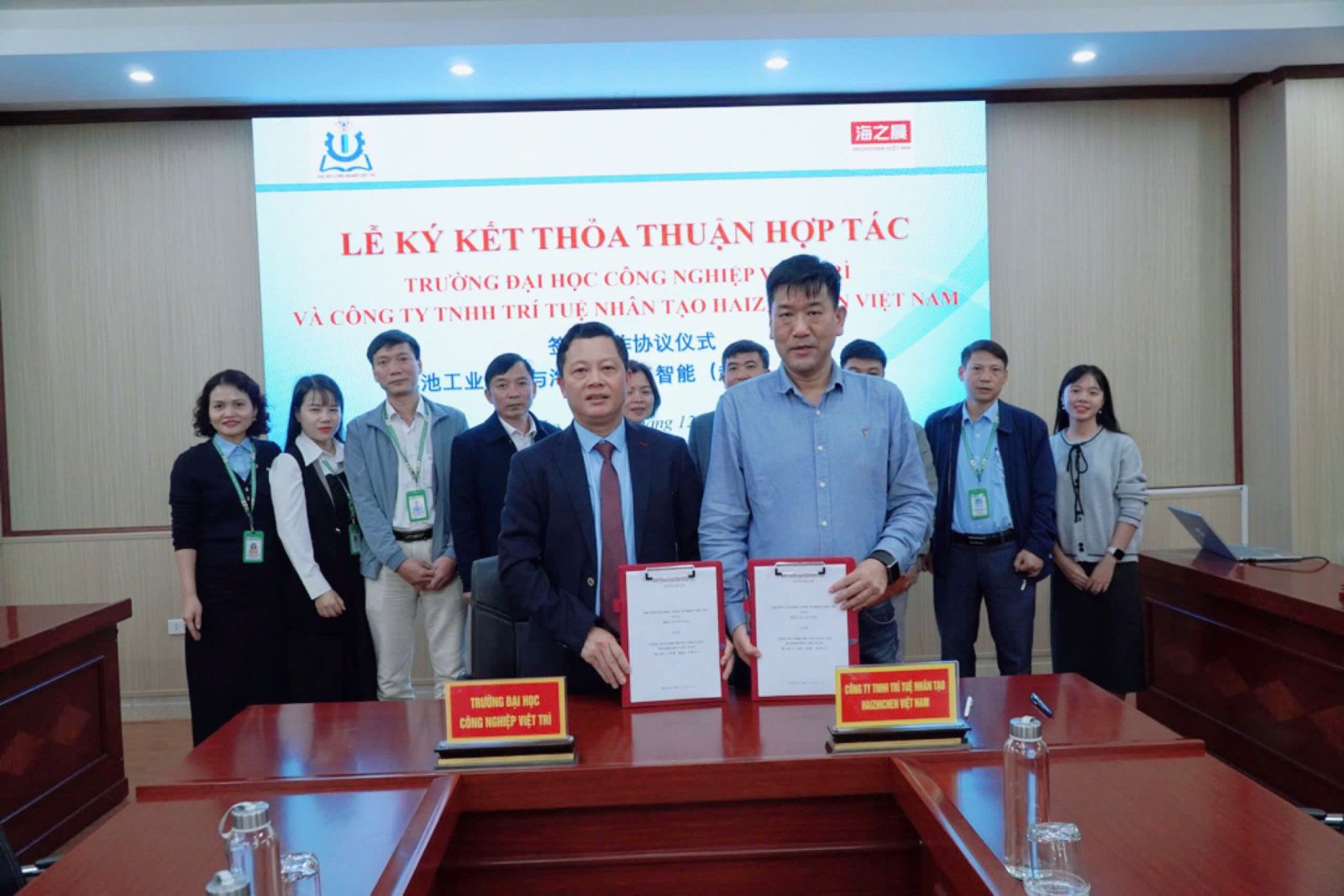 Đặc biệt, Trường Đại học Công nghiệp Việt Trì và Công ty Công ty TNHH VAG Global Education; Công ty TNHH Trí tuệ nhân tạo Haizhichen Việt Nam đã tiến hành ký kết Biên bản ghi nhớ hợp tác. Lễ ký kết diễn ra trong không khí trang trọng, thể hiện quyết tâm của hai bên trong việc thúc đẩy hợp tác quốc tế, mở rộng cơ hội học tập – nghiên cứu cho sinh viên, giảng viên, đồng thời nâng cao chất lượng đào tạo và năng lực hội nhập giáo dục.