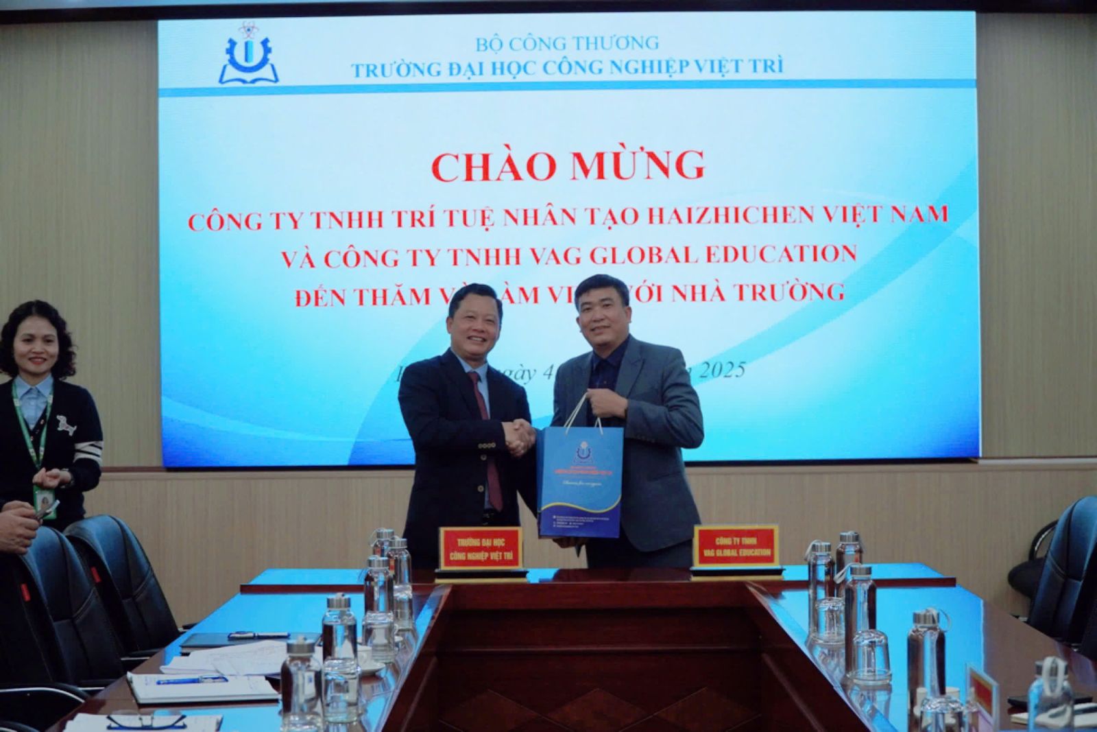 Buổi gặp gỡ và làm việc diễn ra trong không khí thân mật, cởi mở và hiệu quả, mở ra nhiều triển vọng hợp tác mới giữa Trường Đại học Công nghiệp Việt Trì và Công ty TNHH VAG Global Education, Công ty TNHH Trí tuệ nhân tạo Haizhichen trong thời gian tới.
