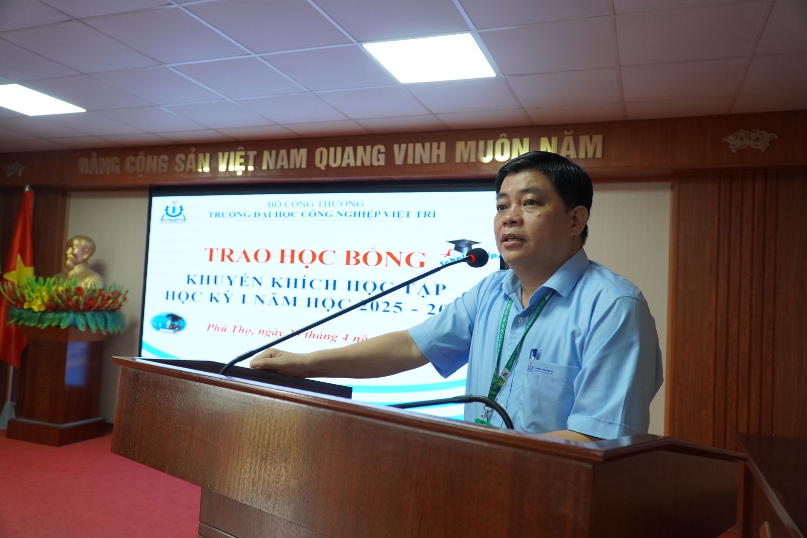 Phát biểu tại buổi lễ, TS. Vũ Quốc Hiến đã chúc mừng và biểu dương những thành tích xuất sắc mà các em sinh viên đã đạt được trong học kỳ vừa qua. Đồng thời nhấn mạnh, học bổng khuyến khích học tập không chỉ là sự ghi nhận xứng đáng cho những nỗ lực cá nhân mà còn là động lực để sinh viên tiếp tục phấn đấu, rèn luyện, góp phần nâng cao chất lượng đào tạo của Nhà trường.
