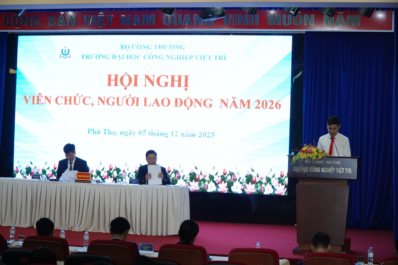 ThS. Lê Xuân Đông – Thư ký Hội nghị đã thông qua Nghị quyết Hội nghị viên chức, người lao động năm 2026, thống nhất các chỉ tiêu, nhiệm vụ và giải pháp triển khai trong năm tới.